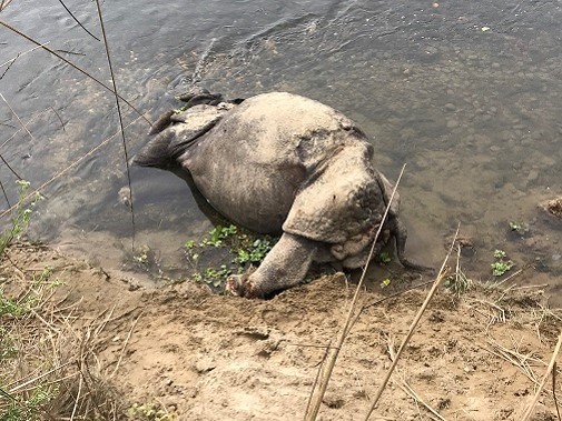 चितवन राष्ट्रिय निकुञ्जमा मृत अवस्थामा भाले गैँडा