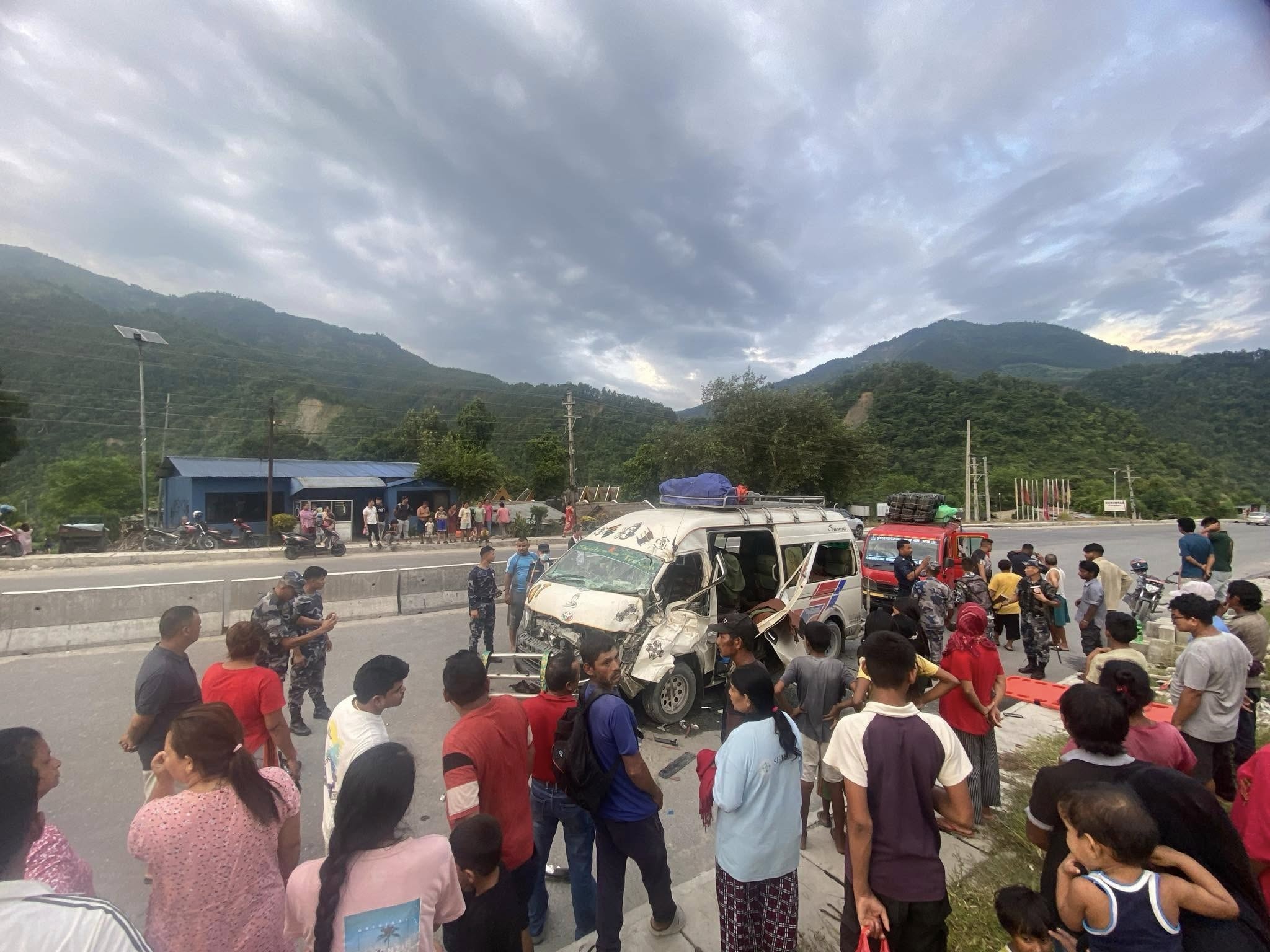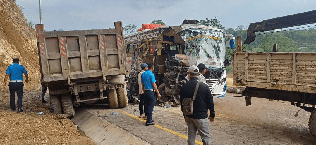 तनहुँमा बस र टिप्पर आपसमा ठोक्किँदा ७