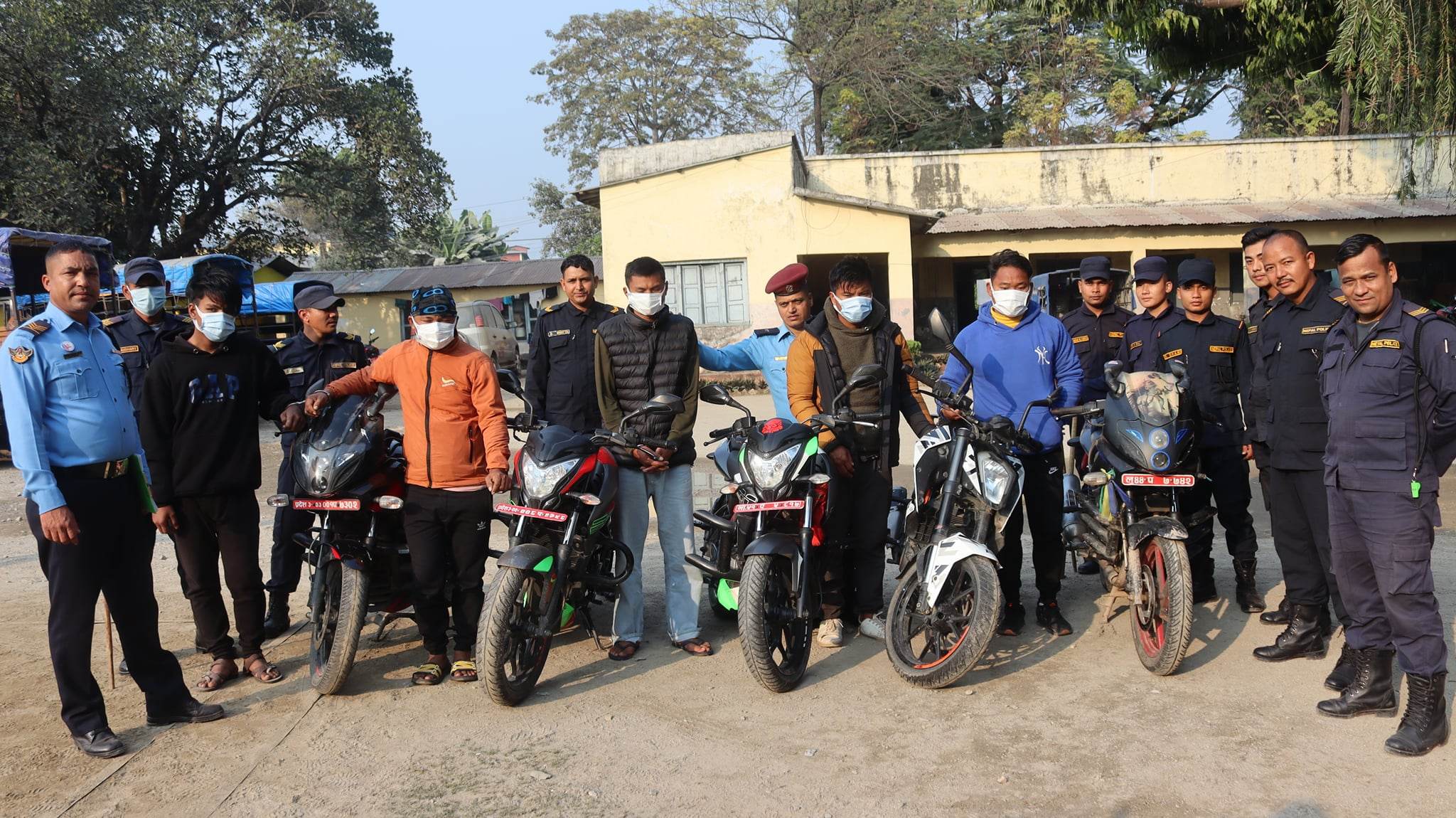 चितवनमा पाँच मोटरसाईकलसहित चोरी गर्ने गिरोह पक्राउ