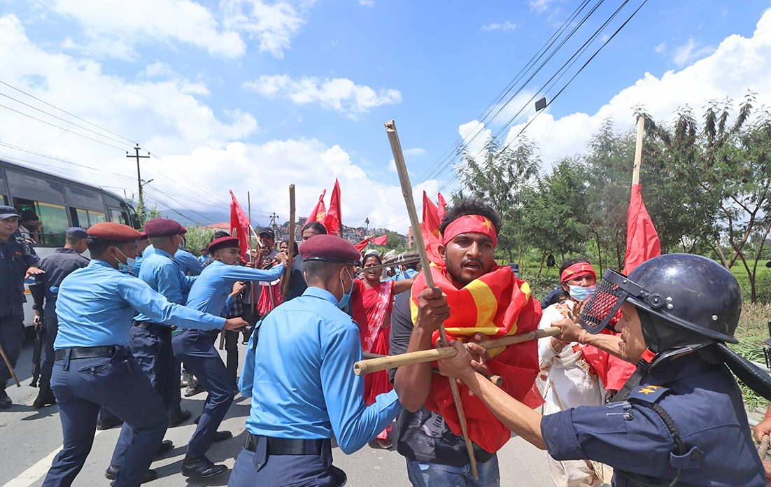 कीर्तिपुरमा मिटरब्याज पीडित र प्रहरीबीच झडप