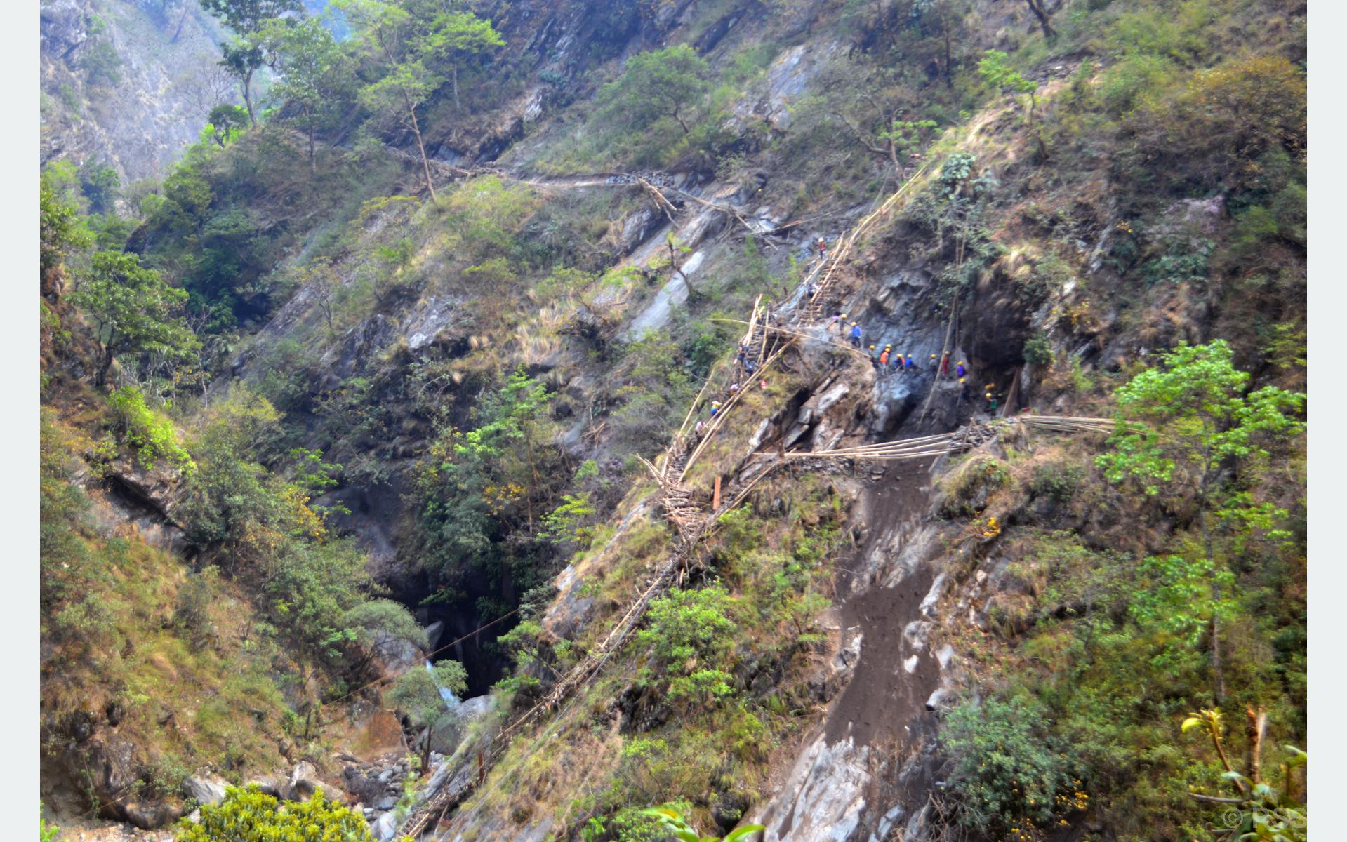 गोरखाको रुन्चेतगाउँ पुग्न भिर खोपेर झोलुङ्गे पुल