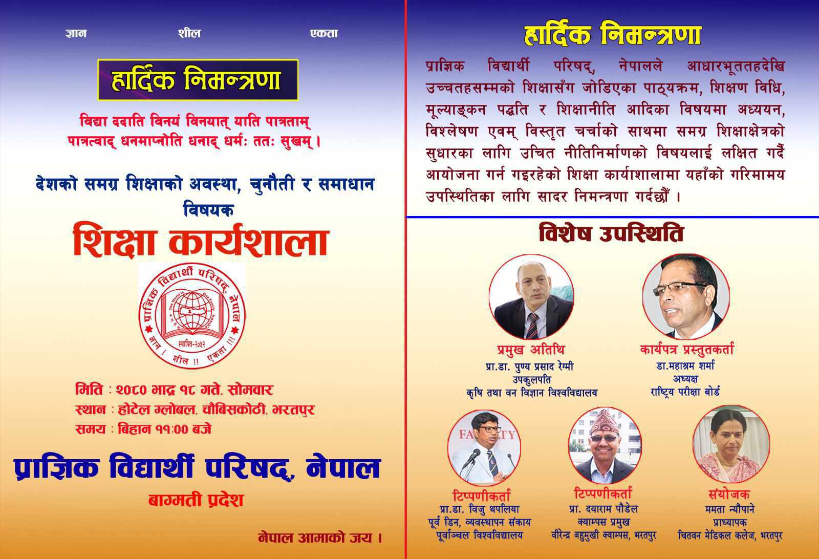 प्राज्ञिक विद्यार्थी परिषद्, नेपालको आयोजनामा आज चितवनमा