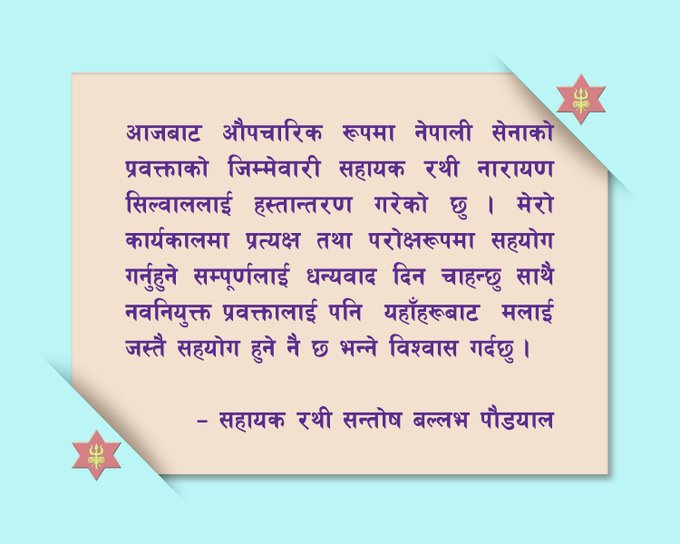 सेनाको प्रवक्तामा नारायण सिलवाल, पाैडेलले लिए बिदाइ