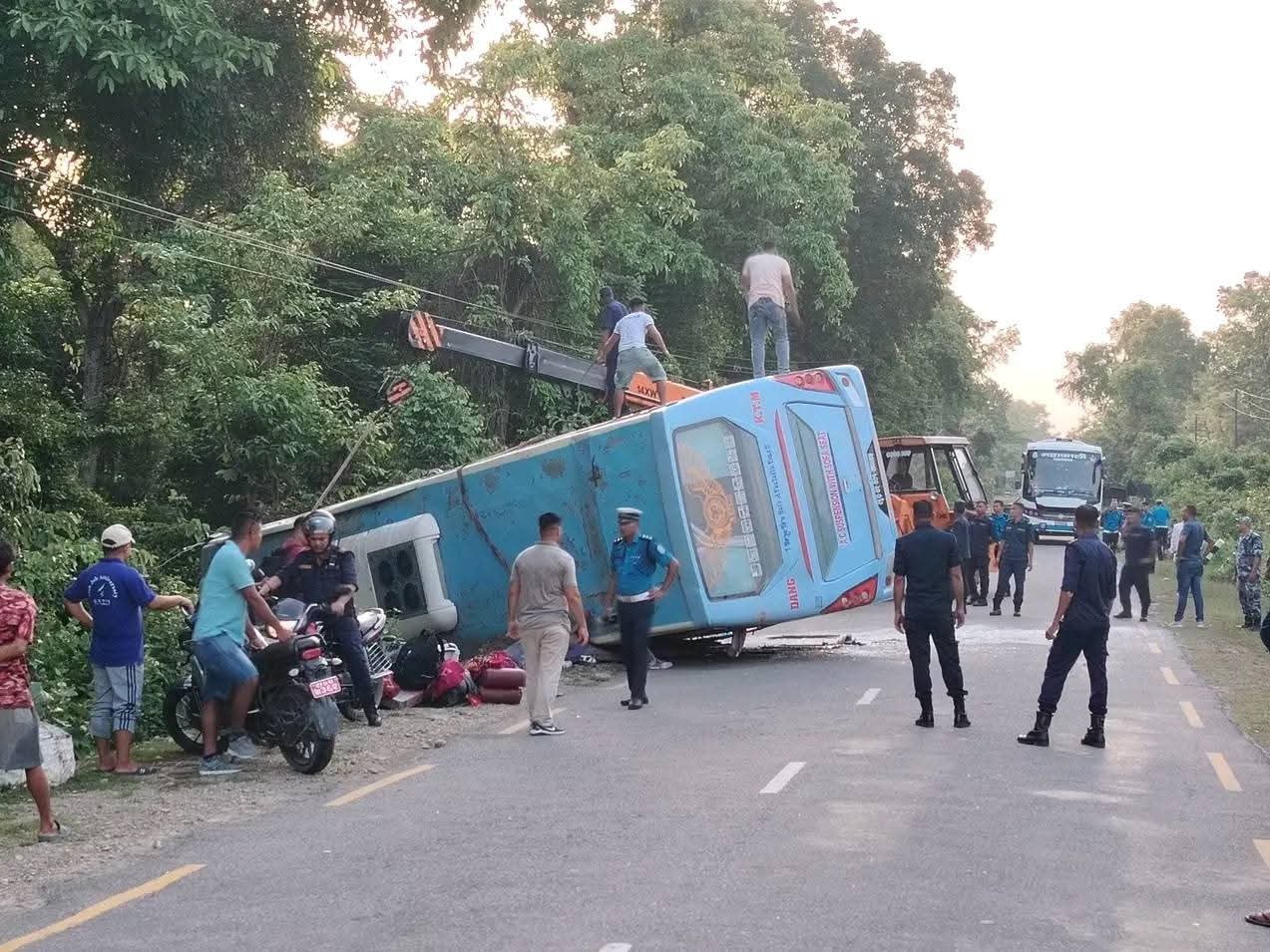 कपिलवस्तुको तौलिहवामा बस दुर्घटना : एक जनाको