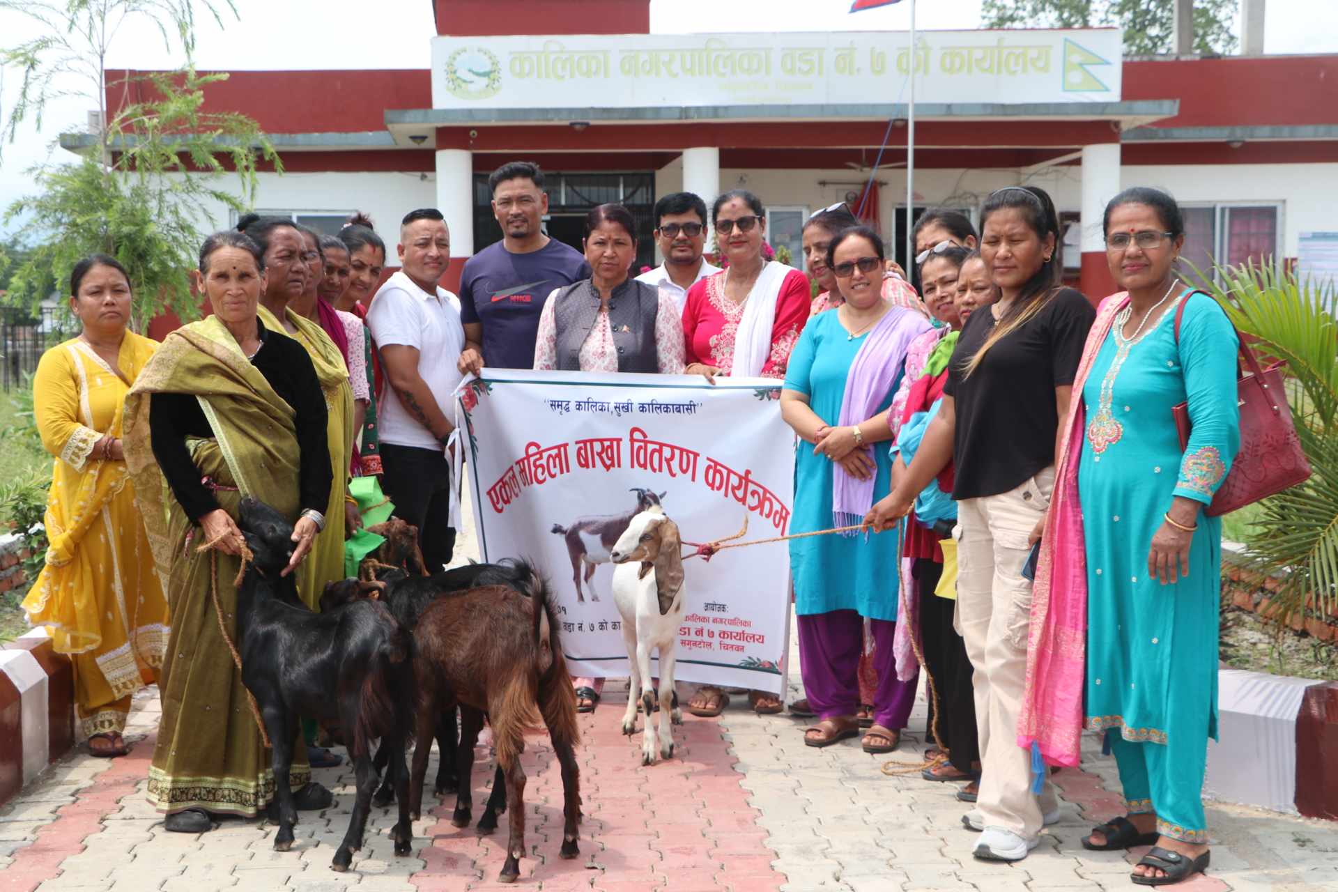 कालिका- ७ का एकल महिलालाई बाख्रा वितरण