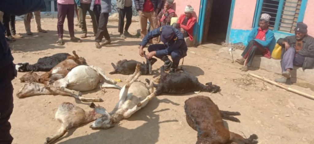 सल्यानमा बाघको आक्रमणबाट ८ बाख्रा मरे