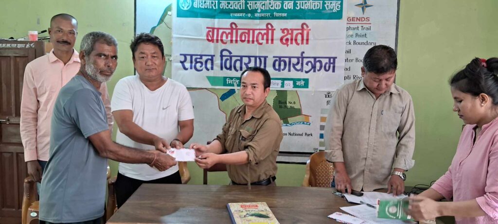 बाघमारा मध्यवर्ती सामुदायिक वनद्वारा वन्यजन्तु पीडित किसानलाई