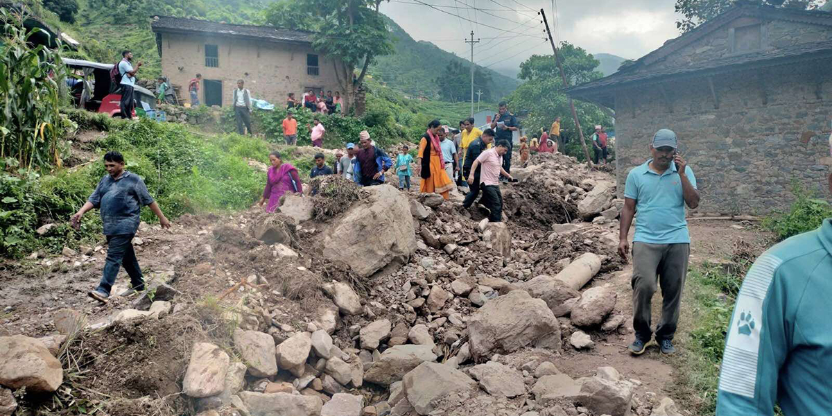 बाजुरामा बाढी पहिरोबाट १३ परिवार विस्थापित, दर्जनौँ
