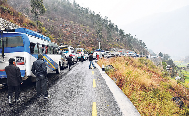 बिपी राजमार्गमा सवारी साधन ‘होल्ड’