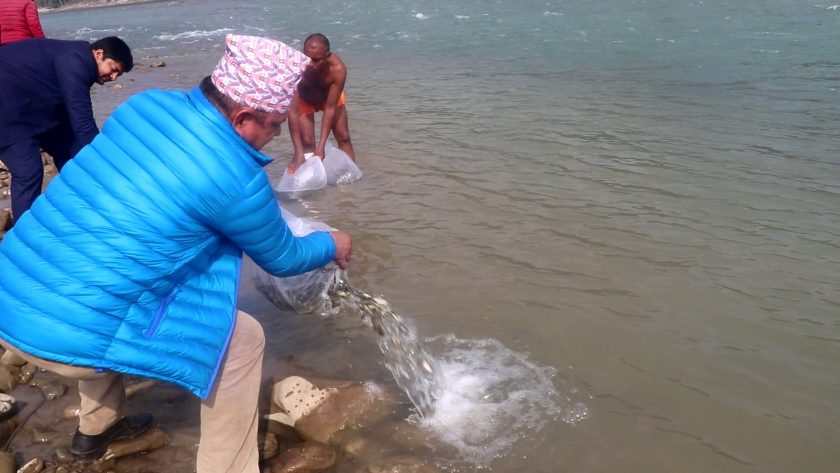 कालीगण्डकी नदीमा ३१ हजार माछाका भुरा छाडियो