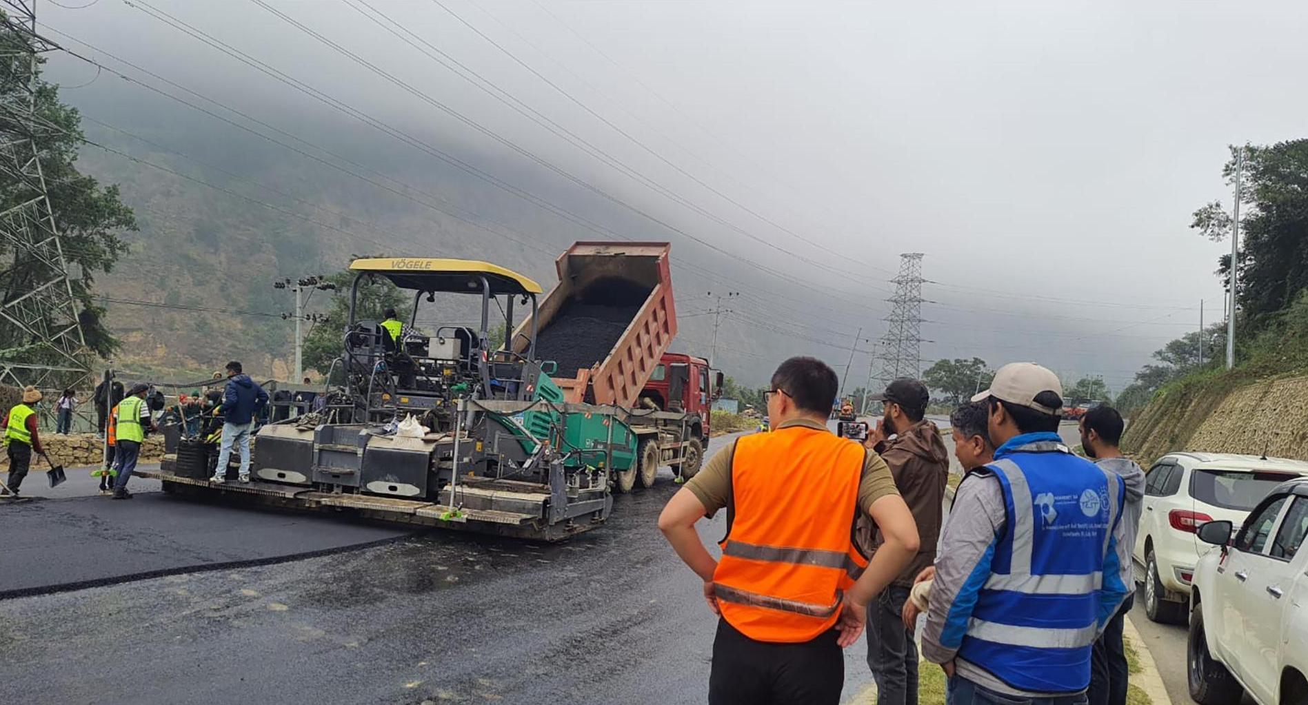 मुग्लिन-पोखरा सडक : दमौली बजारमा कालोपत्र गर्न