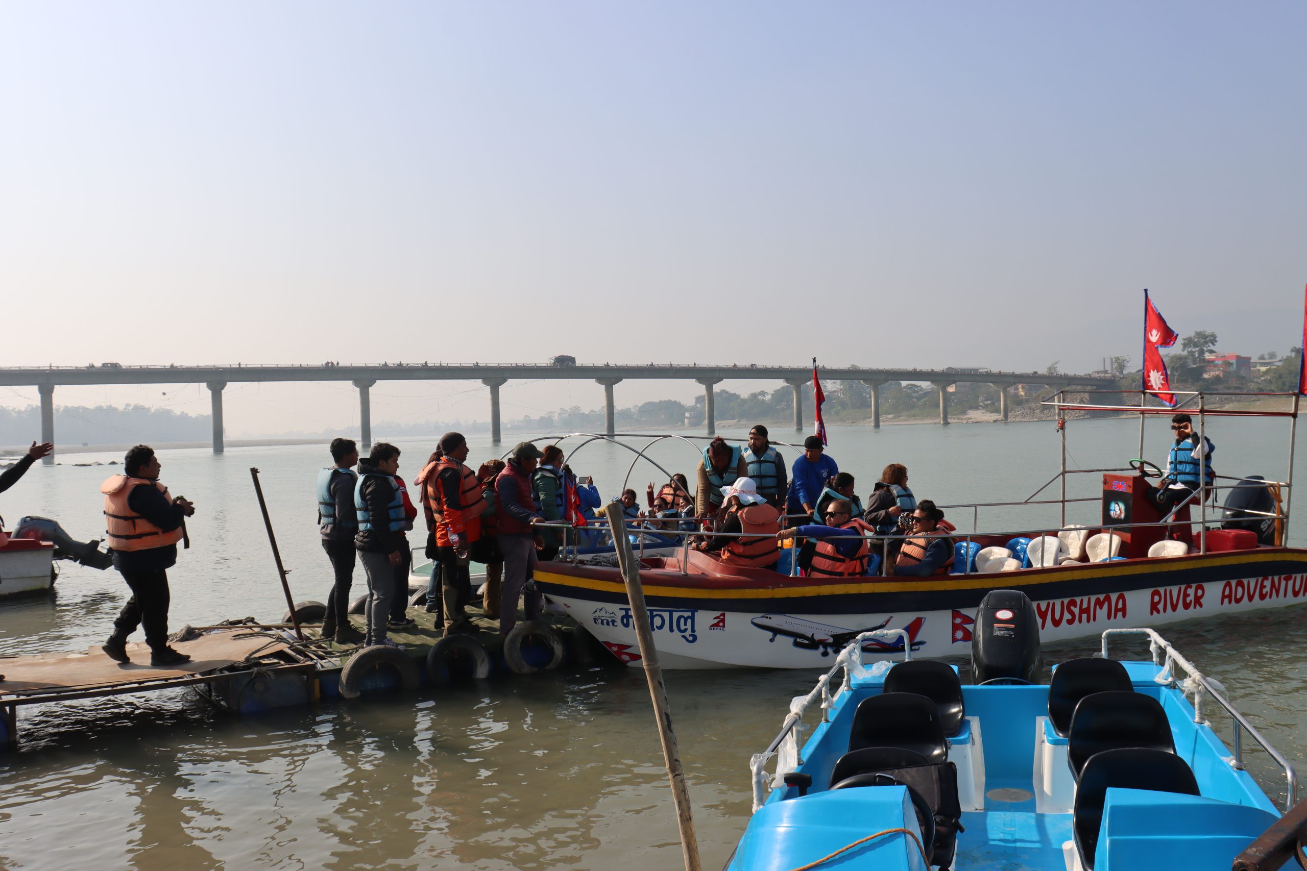 नारायणी नदीमा मोटरबोट चढ्नेको भीड