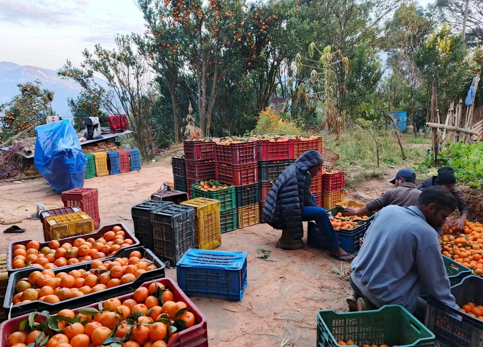 व्यापारीले बगानबाटै उठाउँछन् देउपुरका सुन्तला