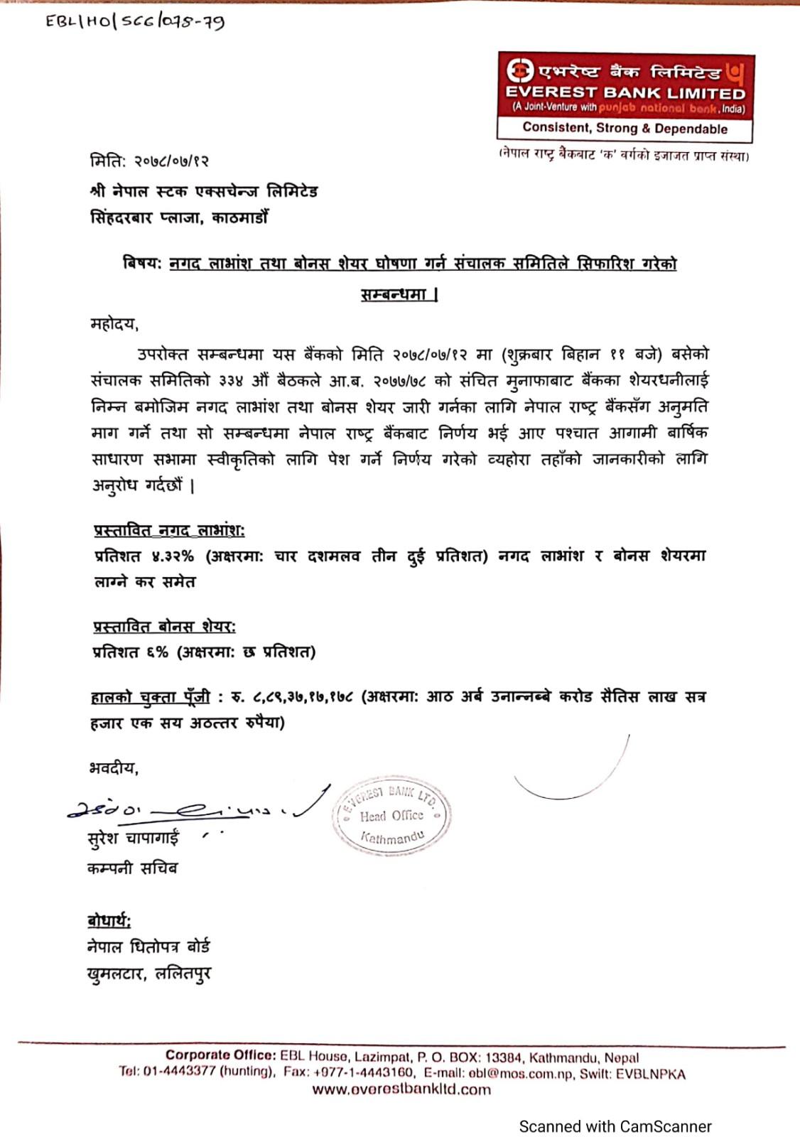 एभरेष्ट बैंकले अपेक्षाभन्दा कम बोनस घोषणा गरेपछि
