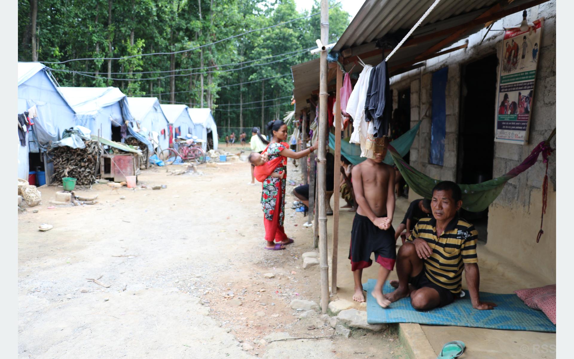 हुप्सेकोटका पहिरो विस्थापित अस्थायी शिविरमा
